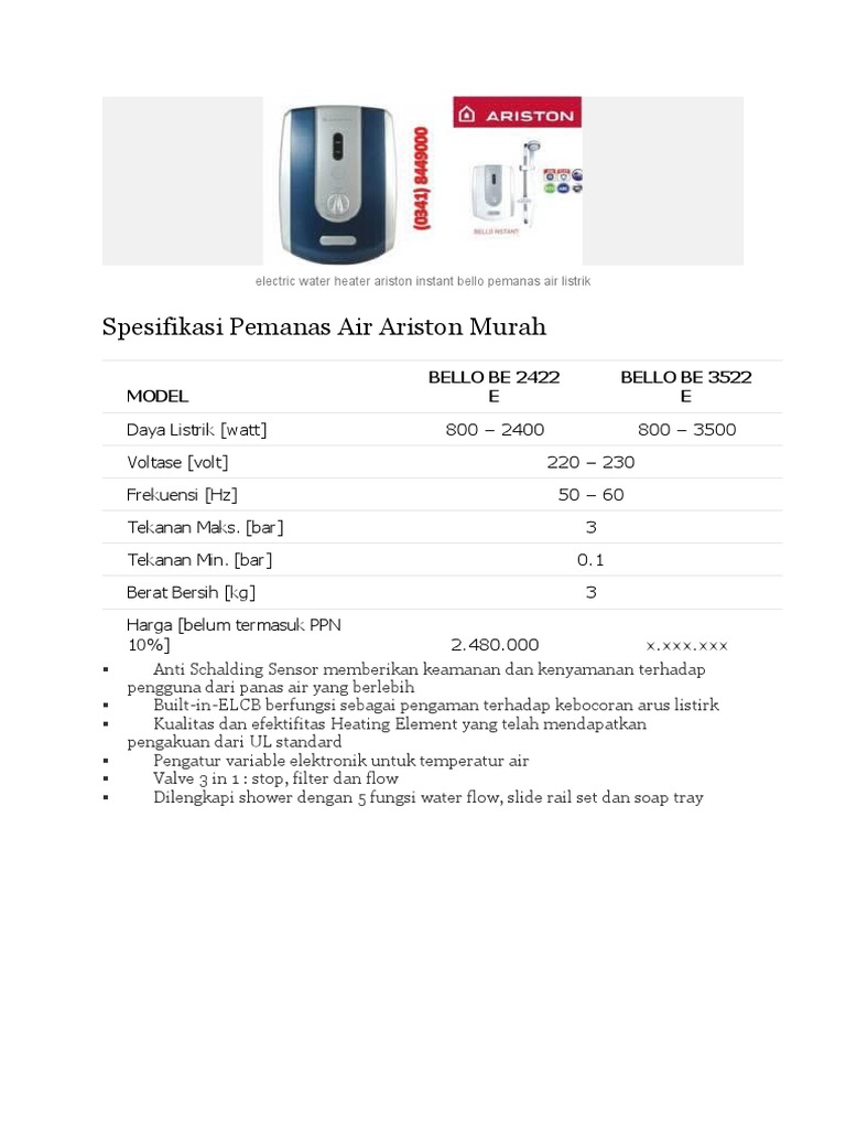 Ariston Pemanas Air Listrik - Daftar Harga Water Heater Ariston Harga Ariston Ti Pro 15 Or 500 Id Rp 2 650 000. Terima service merk ariston pemanas air water heater listrik murah di jakarta bekasi tangerang depok murah panggilan resmi service center ya, sebagai suatu alat ciptaan manusia yang namanya eletronik seperti pemanas air, kompor gas dan kulkas ariston bisa saja rusak, entah karena faktor. Pemanas air listrik saat ini menjadi salah satu cara dalam mendapatkan suasan mandi yang menyenangkan. Tak hanya itu, pemanas air gas juga ternyata lebih ramah lingkungan dibandingkan dengan water heater listrik yang kini sudah dipasang di banyak rumah. Pemanas air listrik merupakan salah satu produk yang paling banyak dicari oleh masyarakat karena produknya sangat familiar. Pemanas air pertama rekomendasi blibli friends adalah ariston nano 10 yang memiliki tangki berkapasitas 10 l.