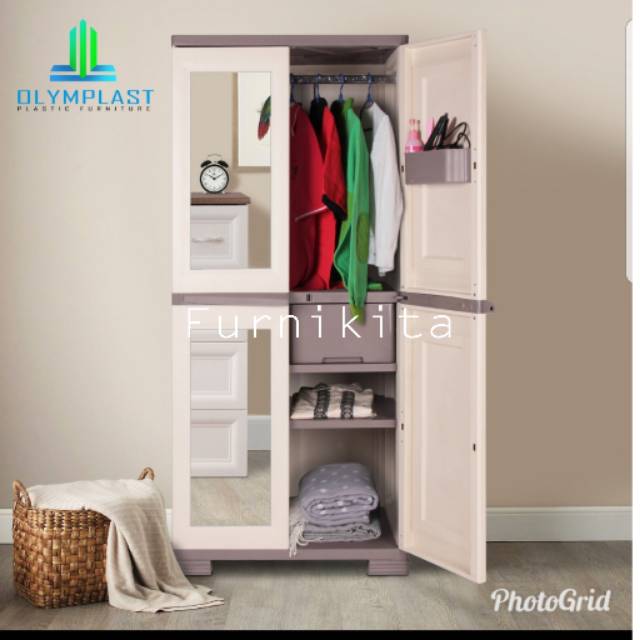 Untuk desainnya, motif anyaman rotan cokelat pada permukaan lemari plastik ini mampu memberikan kesan ekletik pada ruanganmu. Lemari pakaian plastik motif kayu sumber: Kidzshack lemari ini memilki 8 kotak dan satu lemari. Desain minimalis dan hemat tempat Disamping itu harga lemari pakaian plastik yang lebih murah daripada lemari kayu membuat funiture ini banyak diburu dan diminati.